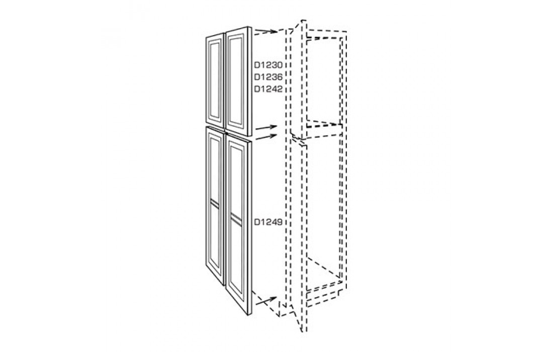 Toffee Shaker LOWER SINGLE DOOR FOR 24" WIDE PANTRY. Decorative door for the lower portion of a tall cabinet or panel (pantry, oven cabinet, refrigerator panel). - 12"W * 3/4"D * 49-1/2"H |